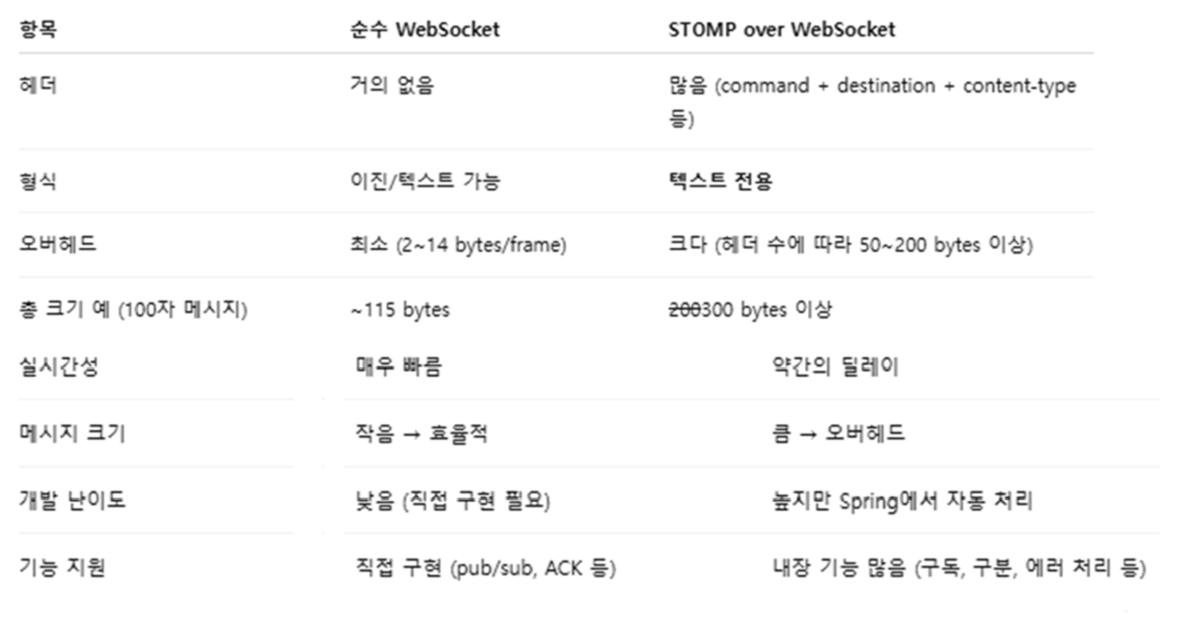 -(STOMP는 텍스트 기반 프레임, 헤더 등 오버헤드가 조금이라도 있음)