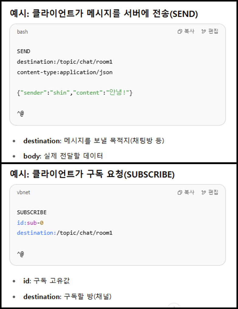 -1:1 채팅방, 1:N 그룹방, 토픽별 알림 등을 STOMP는 경로만 바꾸면 적용 가능.