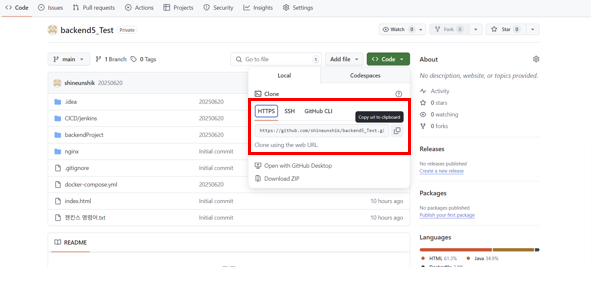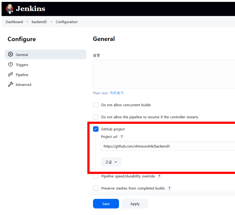 1. 젠킨스에서 github 프로젝트 가져와서 파이프라인 실행 (젠킨스에서 실행하기 전에 반드시 git push 진행)